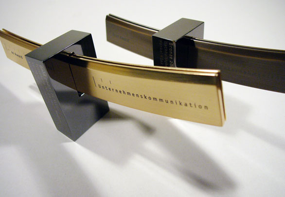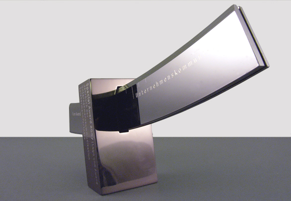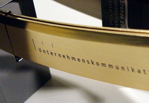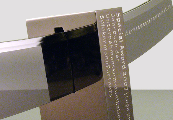 At sea, sextants serve to determine the exact location. Once this is known, captain and pilot can plot the correct course. Precisely ascertaining ones targets is also essential for successful business direction. That is why SpiekermannPartners have taken the appearance and function of sextants as inspiration for designing the award sculpture and logo. The sculpture has been produced in a strictly limited edition.