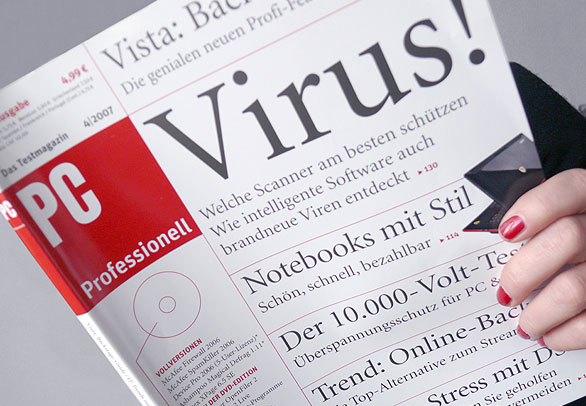 It is unusual and daring for a specialised magazine like PC Professionell to alter its appearance so drastically. As designers, it was our job to tackle the contents without resorting to graphic gimmickry. The aim of the relaunch was to focus the brand image. PC Professionell’s identity as a magazine for professionals was to be clearly communicated using modern design methods.